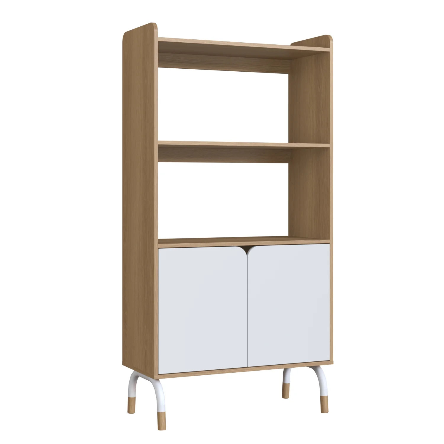 Biblioteca Alta elaborada en madera industrializada de pino MDF y acabado BP que garantiza su durabilidad y resistencia. esta biblioteca combina resistencia y estilo. Sus patas redondas de acero carbono y zapatas regulables garantizan estabilidad en cualquier superficie. Equipada con estantes y dos puertas con bisagras amortiguadas, ofrece un acceso fácil y silencioso a sus contenidos. ¡Sumérgete en el mundo de lectura y organizacion con nosotros! Transporte y armado gratis