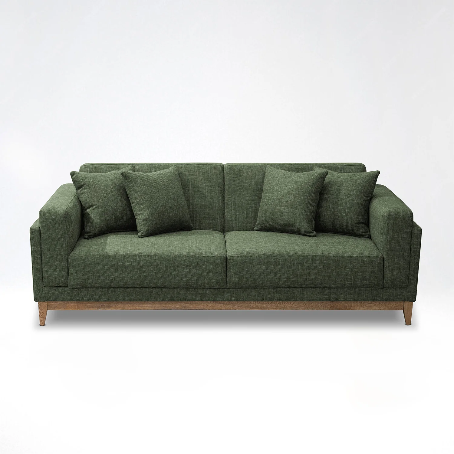 Este sofá de diseño moderno y sofisticado es el complemento ideal para tu sala de estar. Tapizado en una tela suave al tacto, no solo destaca por su atractivo color verde, sino también por ofrecer un alto confort al recostarte. Su diseño incluye cojines decorativos perfectamente coordinados, que no solo añaden un toque estético sino también funcionalidad al proporcionar mayor comodidad.