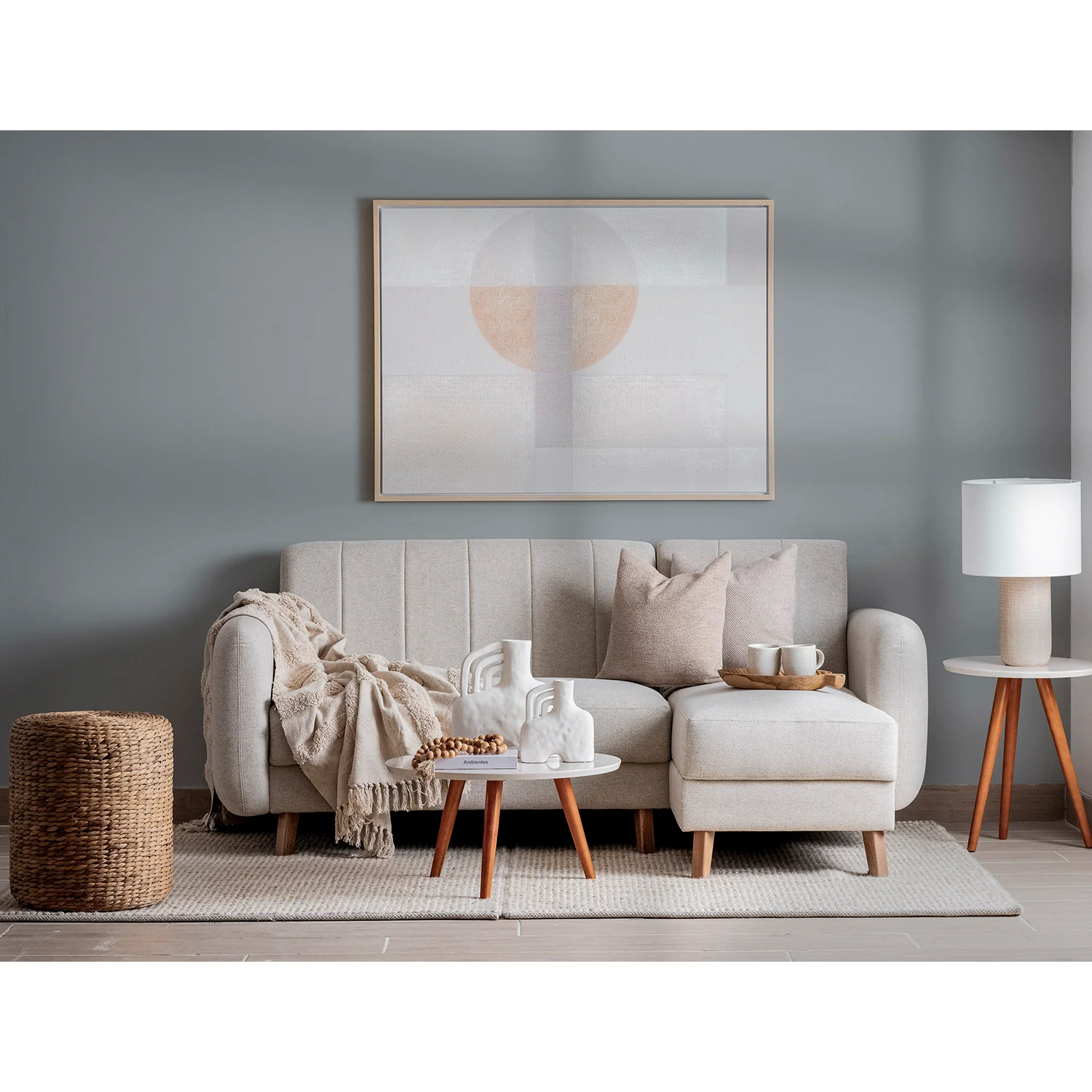 Sofá en L Alissa Lino Verona Beige, Natural